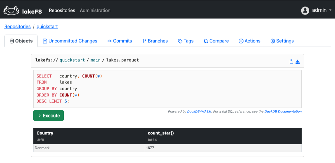 We're going to use DuckDB which is embedded within the web interface of lakeFS.